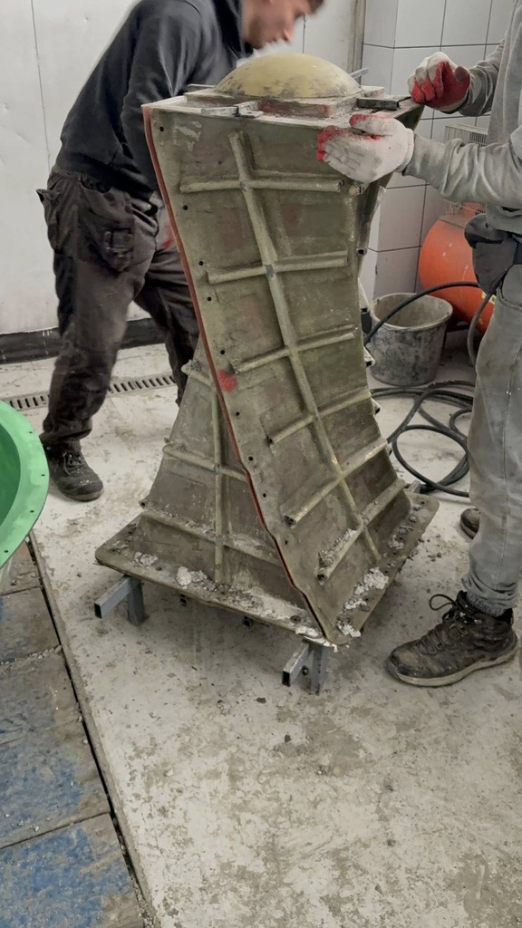 Dzielimy się z Wami kilkoma ujęciami prosto z produkcji – tak wygląda proces tworzenia naszej najnowszej donicy z unikalnym skrętnym profilem, formowanej ręcznie w naszej odlewni.