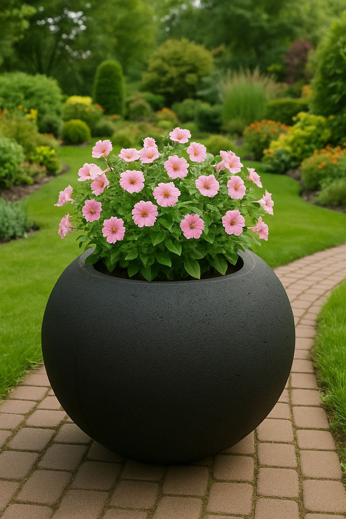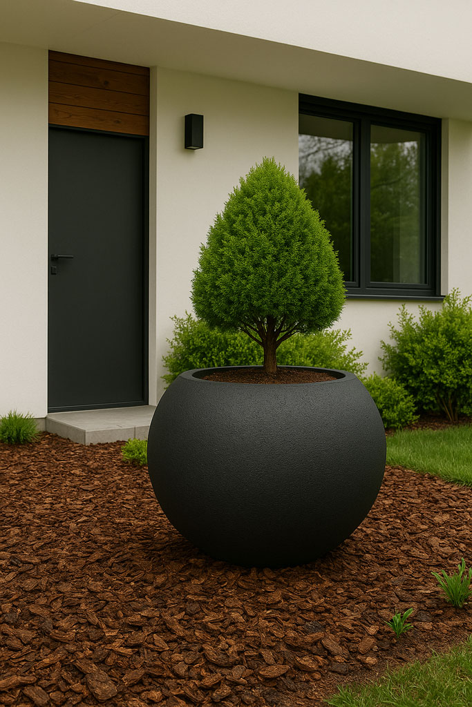 Są projekty, które wymagają rozwiązań w skali makro. Donica SPHERE L (800×700 mm) to największa z naszych kul, stworzona dla tych, którzy chcą wprowadzić do swojego ogrodu element o rzeźbiarskim rozmachu. To potężna, betonowa bryła, która dzięki swojej obłej formie zachowuje niesamowitą elegancję i harmonię, stając się niekwestionowaną gwiazdą każdej nowoczesnej przestrzeni.