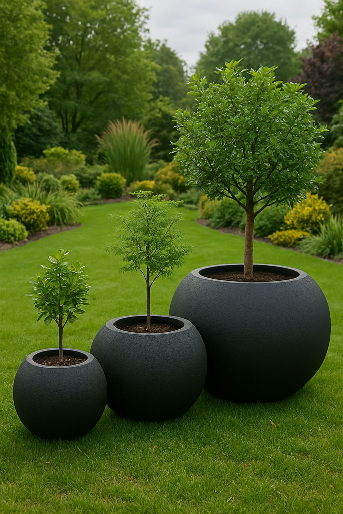 W architekturze ogrodowej to właśnie obłe kształty wprowadzają najwięcej spokoju i szlachetności. Donica M (650 x 567 mm) to większa siostra naszej klasycznej kuli, zaprojektowana z myślą o przestrzeniach, które potrzebują mocnego, a zarazem harmonijnego akcentu. Jej imponująca średnica i perfekcyjne proporcje sprawiają, że nie jest to zwykły pojemnik na rośliny – to pełnowymiarowa rzeźba ogrodowa.