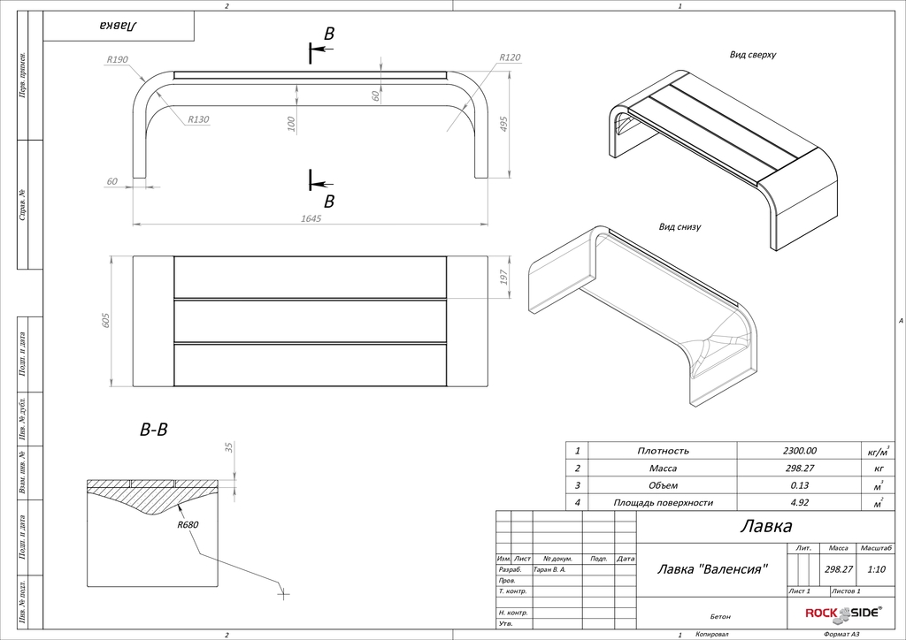 Betonowa ławkaBetonowa ławka VALENCIA 160x50x60 cm