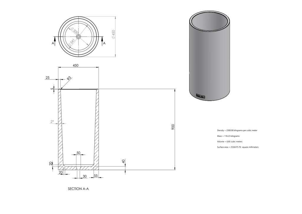 Misa OSLO XL z wysokogatunkowego betonu ognioodpornego.