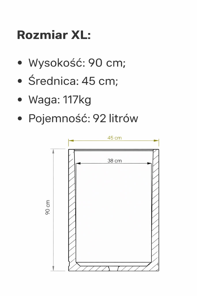 Średnica: 45 cm – zapewnia stabilność i odpowiednią przestrzeń dla systemu korzeniowego.