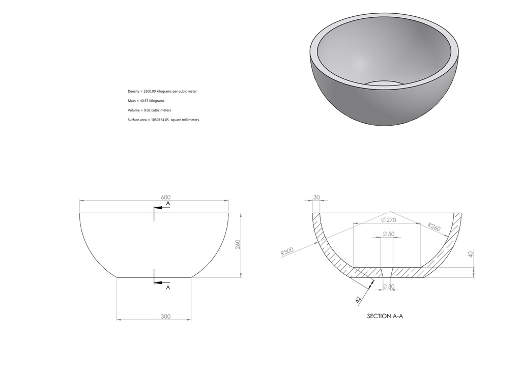 Betonowy biokominek ogrodowy VIENNA M – półkula 60×26 cm